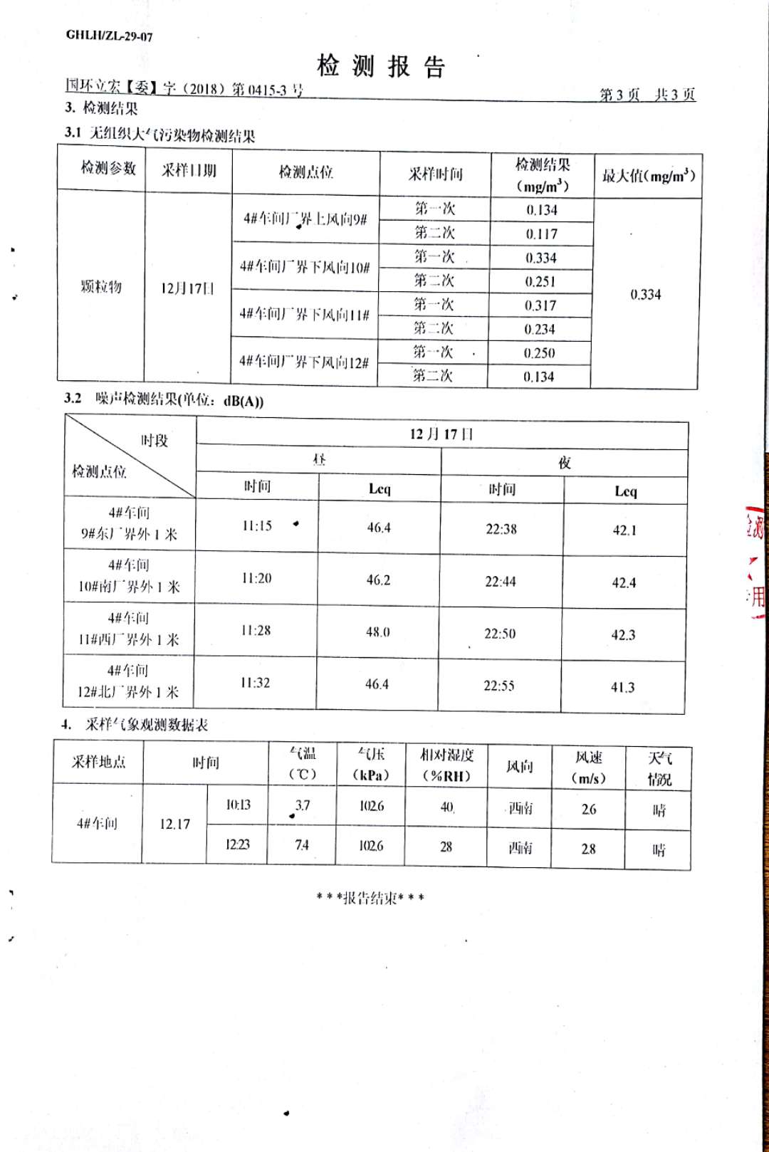大氣污染物、噪聲檢測(cè)--4#車間